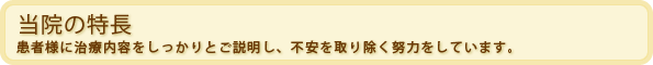 「どのような治療だったのか?」「今後の選択肢」など、患者様にとって疑問に思うこと、不安に思うことなどを出来る限り取り除けるよう努力しております。