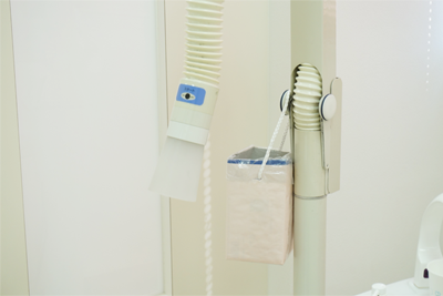 診療中に飛散する切削片、金属片、血液、唾液などの汚染物質を患者様が吸い込まぬよう口腔外バキュームを設置。