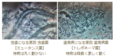 レントゲンに細菌は映りません。そこで、細菌を発見することが出来る位相差顕微鏡検査は重要です。 虫歯や歯周病は虫歯菌、歯周病菌が原因による感染症。 患者さまの虫歯・歯周病リスクが高い奥歯から少量の汚れを取り、その場で瞬時に検査が可能です。もちろん痛みは全くありません。
