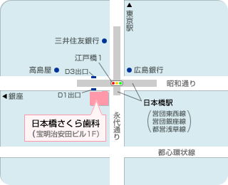 | 所在地 | 〒103-0027 中央区日本橋2-15-10 宝明治安田ビル1F 東西線 銀座線 都営浅草線 日本橋駅 D-1出口すぐ |