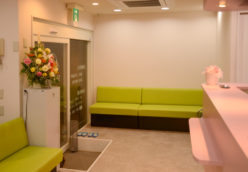 明るい雰囲気の待合室。テレビや本・雑誌などをご用意しています。