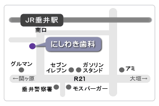 ●医療法人社団マウデント にしわき歯科 ●〒503-2125 岐阜県不破郡垂井町東神田3-39 ●TEL:0584-22-6464 ●FAX:0584-22-6102 ●駐車場完備 JR垂井駅 南口 より徒歩3分