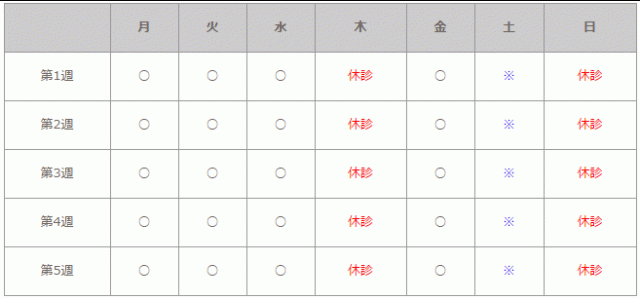 休診日:日曜・祝日・木曜日