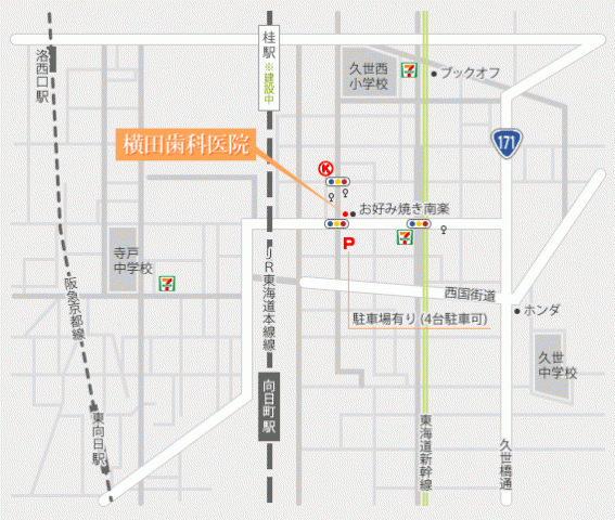 所在地 〒601-8213 京都市南区久世中久世町2-105-1 コスモプラザ TEL 075-934-9222 お車でご来院される方へ ・171号線を西へ500m、○○交差点北東角 ・171号線を西へ500m、○○交差点北東角 交通機関でご来院される方へ ・171号線を西へ500m、○○交差点北東角 ・171号線を西へ500m、○○交差点北東角