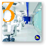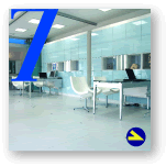 院内は光ファイバーによりLANネットワーク化しており、被爆量が少ないデジタルレントゲンはもちろん、診療室内のすべてのコンピュータから予約、画像管理が行える、白と青を基調としたおしゃれな近未来的空間です。