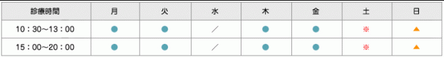 ※土曜日の診察は、9:30~13:00/15:00~18:00です。