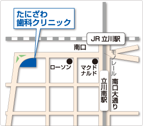 立川市柴崎町のたにざわ歯科クリニックへお越しの際は、下記に掲載の診療時間と所在地情報をお確かめの上ご来院くださいますようお願い致します。
