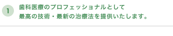 私たちはお口の中のみならず、全身的な状態もふまえた上で診療を行っています。口腔疾患に対する技術的・学術的にプロフェッショナルとは何かを追求し、皆様にトップクラスの最善の医療を提供いたします。そのために歯科医師・歯科衛生士・スタッフ全員が一丸となり、日々の臨床を重視しながらアカデミックな分野にも目を向け続けています。そして各種学会にその成果を発表し、専門医、認定医の資格をとり、皆様の治療にフィードバックしています。