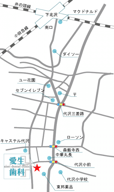 医療法人社団 愛清 愛生歯科 〒155-0032 東京都世田谷区代沢5-2-10-2F TEL:03-3414-7053 FAX:03-3414-4596 交通:井の頭線、小田急線下北沢駅