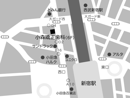 ※丸の内線・大江戸線は小田急ハルクの地下食品売り場脇の出口B16から地上に出ると近いです。